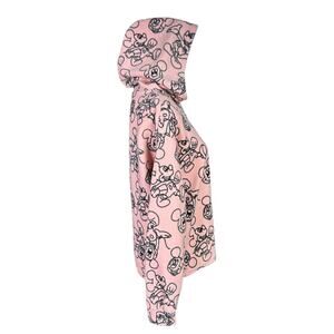 Details: Blush Pink and Blank Micky Mouse Allover Print Plush Fleece 1/4 Zip Hoodie.