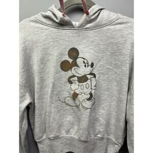Disney Mickey Mouse Hoodie Women's Small S Grey Crop Pullover Sweater