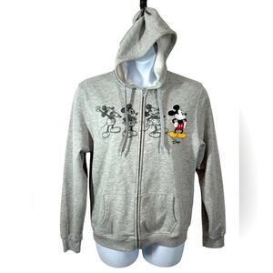 Disney Mickey Mouse Hoodie Zip-Up Fleece Gray Sweatshirt Classic Cartoon Print