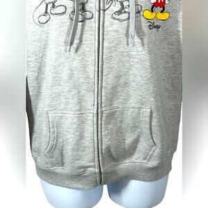 Disney Mickey Mouse Hoodie Large | Zip-Up Fleece Gray Sweatshirt Classic Cartoon Print