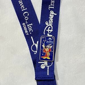 Introducing a Disney Mickey Mouse lanyard ID holder keychain, featuring a Mickey Mouse Travel Company pin. This set includes a durable lanyard with an ID holder, perfect for holding badges or keys, along with a fun, collectible Mickey Mouse pin. Both items are in great condition.