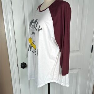 Disney Mickey Mouse Long Sleeve Shirt - White and Maroon Sz 2X