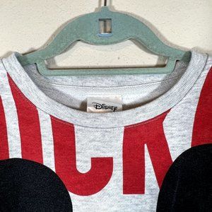 Disney Mickey Mouse Long Sleeve Sweatshirt Gray Spellout Retro Graphic Medium