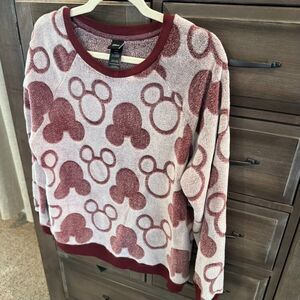 Disney Mickey Mouse Maroon & Cream Fleece Sweatshirt Women's Pullover XL