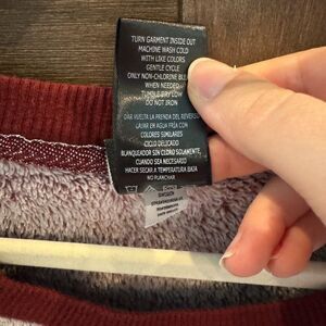 Cozy up in Disney style with this maroon and cream Mickey Mouse sweatshirt. Featuring an allover Mickey head print, soft fleece feel, and ribbed trim at the neck, cuffs, and hem, this pullover blends comfort with playful Disney magic. Perfect for park days, lounging, or casual everyday wear. If you have a winter trip to Disney World or Disneyland, this is perfect, providing warmth without heavy fabric.