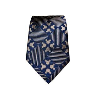 This Disney Mickey Mouse tie is a beautiful combination of midnight blue and copper colors. The midnight blue base is adorned with copper-colored Mickey Mouse silhouettes, adding a touch of playfulness. The copper-colored stripes add a subtle shine, making it perfect for both formal and casual occasions. It is a must-have accessory for any Disney fan, lending a bit of whimsy to a sophisticated wardrobe.