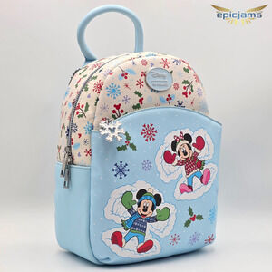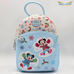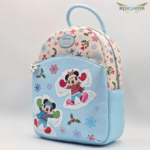 Disney Mickey Mouse & Minnie Mouse Snow Angels Christmas Blue Mini Backpack Bag