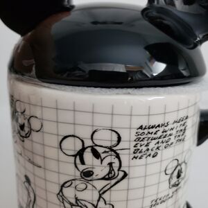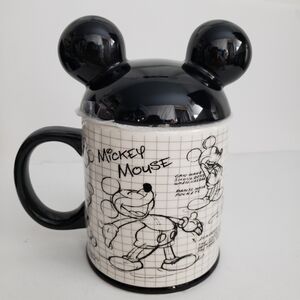 NWT. Disney Mickey Mouse Sketchbook ceramic Mug with ear shaped lid. Holds 17oz.