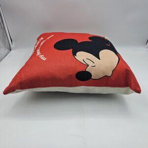Good preowned condition - filled pillow case but no brand tag. Measurements shown in photos. See photos for additional details. Disney Mickey Mouse My Hear is With You Kissing Plush Pillow Love Valentines Red.