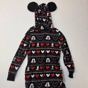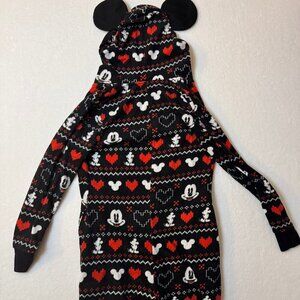 Disney Mickey Mouse Onesies Womans One Piece with Hoodie Hearts #1419