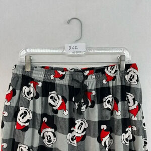 Disney Mickey Mouse Pajama Pants Womens L Gray Plaid Christmas Holiday Pull On