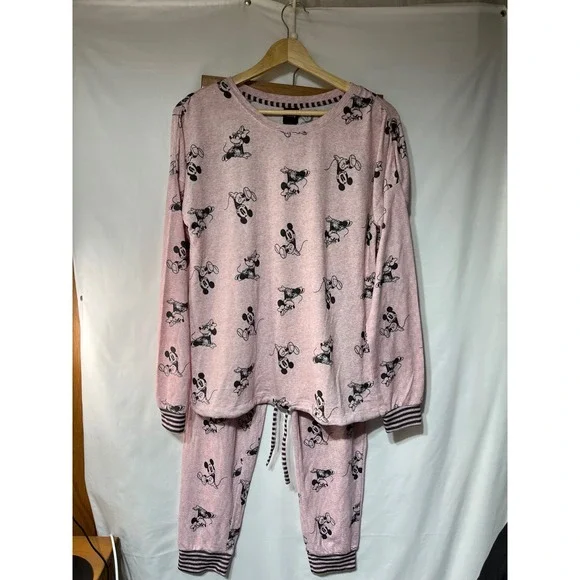 Keywords: Disney, Mickey Mouse, pajama set, women's pajamas, sleepwear, loungewear, pink pajamas, long sleeve pajamas, cozy, comfortable, Disney loungewear, Mickey Mouse sleepwear, cute pajamas, character pajamas, girls pajamas