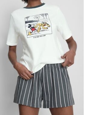 Embrace cozy nights with this adorable Disney Mickey Mouse pajama set. The soft, pink fabric is adorned with playful black silhouettes of Mickey Mouse, creating a whimsical and comfortable loungewear experience. The long-sleeved top features a classic crew neckline and banded cuffs, while the coordinating pants offer a relaxed fit with an elastic waistband and banded ankles for a secure feel. Perfect for dreaming sweet dreams or enjoying a lazy Sunday morning at home.