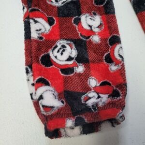 Disney Mickey Mouse Plaid Fleece Fuzzy Pajama Pants Size S Red Black Santa Hat