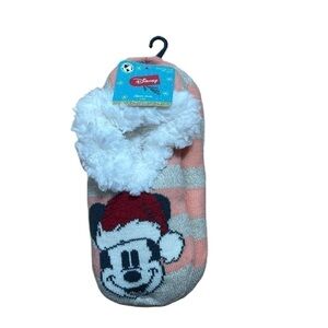 Disney Mickey Mouse Plush Slipper Socks NWT Sz 4-10 Women’s Christmas Peach Tan
