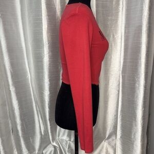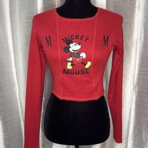 Disney Mickey Mouse Red Long Sleeve Raw Hem Graphic Front Long Sleeve Women’s XS