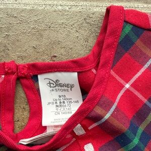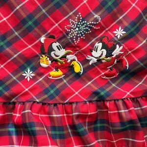 Adorable Disney nightgown with a red plaid pattern. Features Mickey Mouse design. Cozy and perfect for bedtime.
