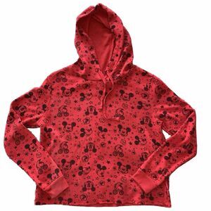 Disney Mickey Mouse Red Pullover Hoodie Jerry Leigh Polyester Hemless LARGE EUC