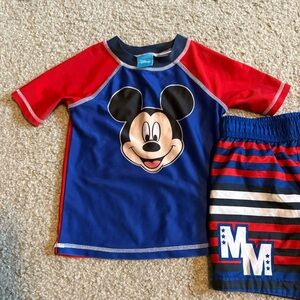 Disney Mickey Mouse Red and Blue Swimwear Set 3T Rash Guard Trunks Shirt