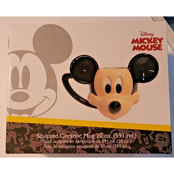 This Disney Mickey Mouse Sculpted Ceramic Mug is a charming 20oz cup featuring a 3D character face design of the beloved Mickey Mouse.This collectible item would be perfect for fans of Disney and Mickey Mouse. The mug is brand new in its original box, making it a great addition to any Disneyana collection or a wonderful gift for a Mickey Mouse enthusiast. Enjoy your favorite hot beverages in style with this delightful and detailed ceramic mug.