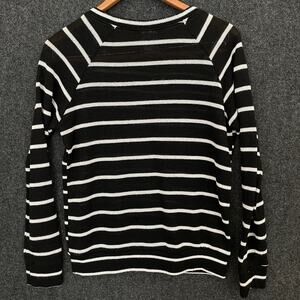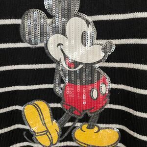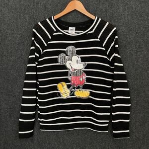 Disney Mickey Mouse Sequin Sweater Women’s L Black White Stripe Pullover Holiday