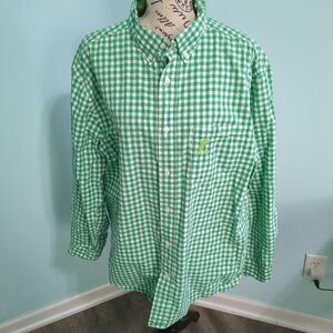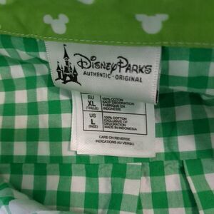 Disney Mickey Mouse Shirt Mens Cotton XL Button Up Plaid Long Sleeve Green