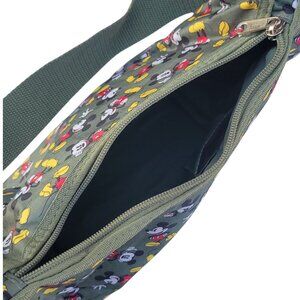Disney bag, Mickey Mouse, shoulder bag, cartoon print, green bag, multicolor bag, adjustable strap, zipper closure, Disney accessory, casual bag, everyday bag, lightweight bag, durable material