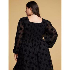 Disney Mickey Mouse Spider Web Midi Dress Womens 2X Black Velvet Ballon Sleeves