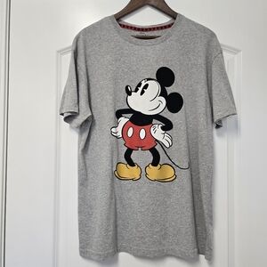 Casual gray t-shirt featuring a classic Mickey Mouse graphic. Perfect for Disney fans.