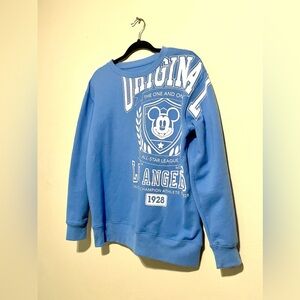 Stay cozy and stylish with this blue Mickey Mouse sweater. Perfect for casual outings, this sweater features a classic design with a playful touch.