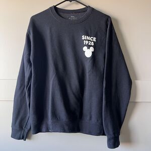 Official Disney crewneck pullover featuring front chest print: "SINCE 1928" with Mickey silhouette
