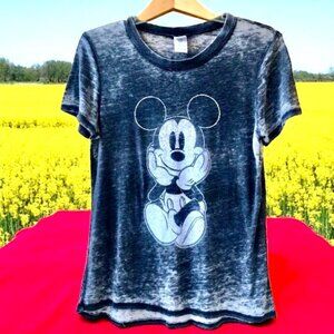 Disney Mickey Mouse T Shirt Gray Burnout Short Sleeve Thin Fabric Semi Sheer