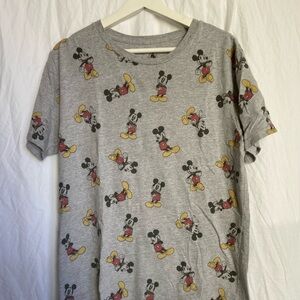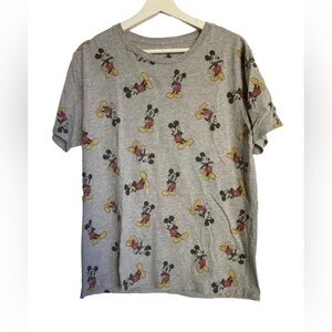 Disney Mickey Mouse T Shirt grey All Over Print Crew Neck Graphic Size Medium
