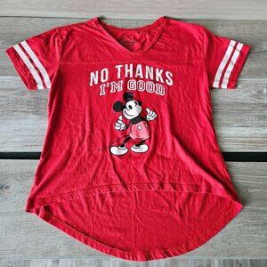 Disney Mickey Mouse T-Shirt Crop Jr XL 15-17 Red V Neck "No Thanks I'm Good"