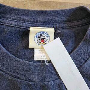 This Disney Mickey Mouse Tattoo Style Distressed Graphic T-shirt in size large features a classic fit with a crew neck and short sleeves. The black shirt showcases a graphic print of Mickey Mouse with a logo accent, perfect for fans of Disney and those who appreciate a retro, Harley style look. Easy to care for with machine washable instructions, this t-shirt is suitable for all seasons and can be worn by both men and women. Shows signs of wear, fading, see pictures