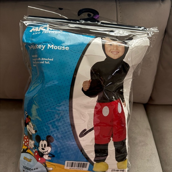 Adorable Mickey Mouse costume for toddlers. Features iconic black, red, and yellow design. Perfect for Halloween and dress-up fun. New condition worn just once for Halloween.