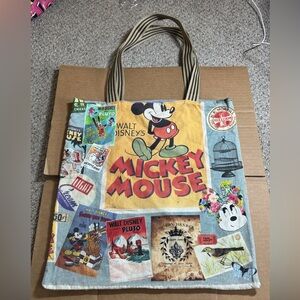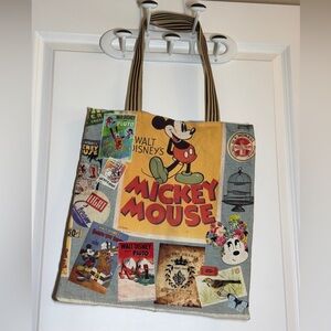Mickey Mouse tote bag featuring vintage-style graphics and text.