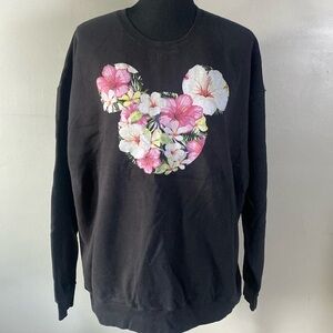 Disney Mickey Mouse Tropical Floral Black Crewneck Sweatshirt Sz XL Clean Good Condition