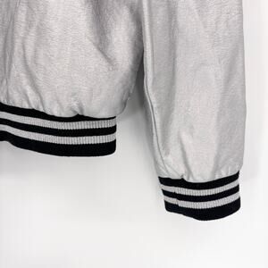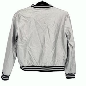 Disney Mickey Mouse Varsity Jacket S Bomber Full Zip Embroidery Silver Metallic