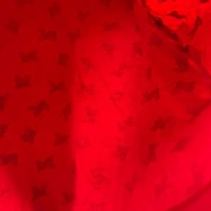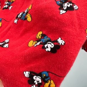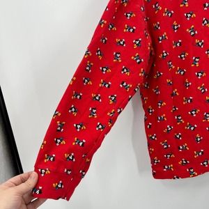 Disney vintage Micky & Co Mickey Mouse calico cartoon patterns, solid red moc turtle neck long sleeve blouse. Women's size large in very good condition.