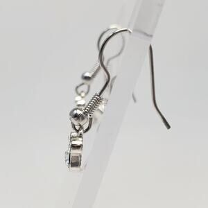Disney Mickey Mouse White Rhinestone Dangle Earrings Silver