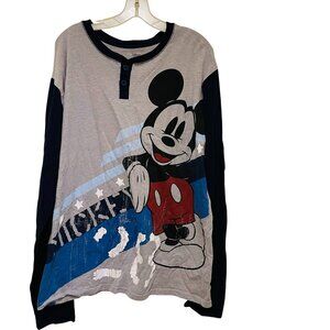 Disney Mickey Mouse Women 2XL Gray Black Tees Henley Pullover Raglan Long Sleeve