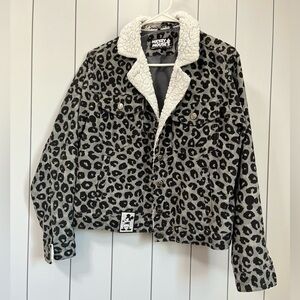 Disney Mickey Mouse Women’s Black & Gray Leopard Print - Corduroy Jacket - M