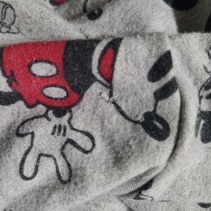 in these Disney Mickey Mouse pajamas. Featuring a playful Mickey Mouse print, these gray and red pajamas are perfect for bedtime fun. Elastic waist with tie and elastic around ankles. Rayon/polyester/Spandex soft and warm.