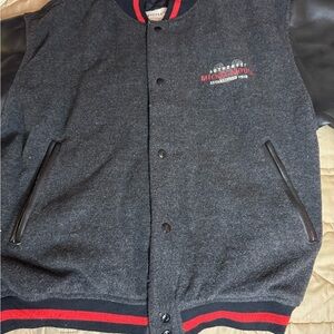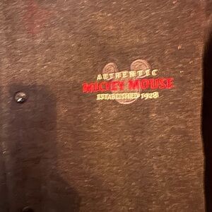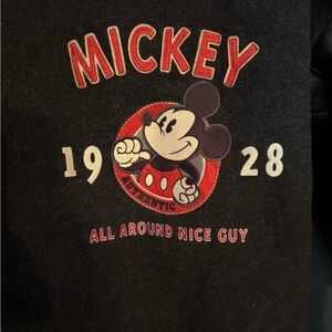 Disney Mickey Mouse Wool Leather Varsity Jacket Mens Medium Black Gray EUC