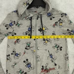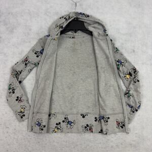 Disney Mickey Mouse Youth Hoodie Gray Zip All Over Print Sweatshirt Medium. Good Preowned Condition - Faded Size/Material Tag. SEE PHOTOS MEASUREMENTS AND SIZING.