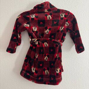 Disney Mickey Mouse Youth Unisex Plush Red and Black Bath Robe Size 2T/3T