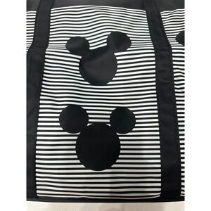 Disney Mickey Mouse Zippered Tote Bag Mickey Heads Stripes Black White Nylon