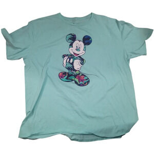 Disney Mickey Mouse mint green tropical floral print t shirt tee unisex 2x
