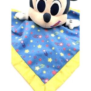 Disney Mickey Mouse security Blanket Baby Blue Yellow Star Satin Lovey